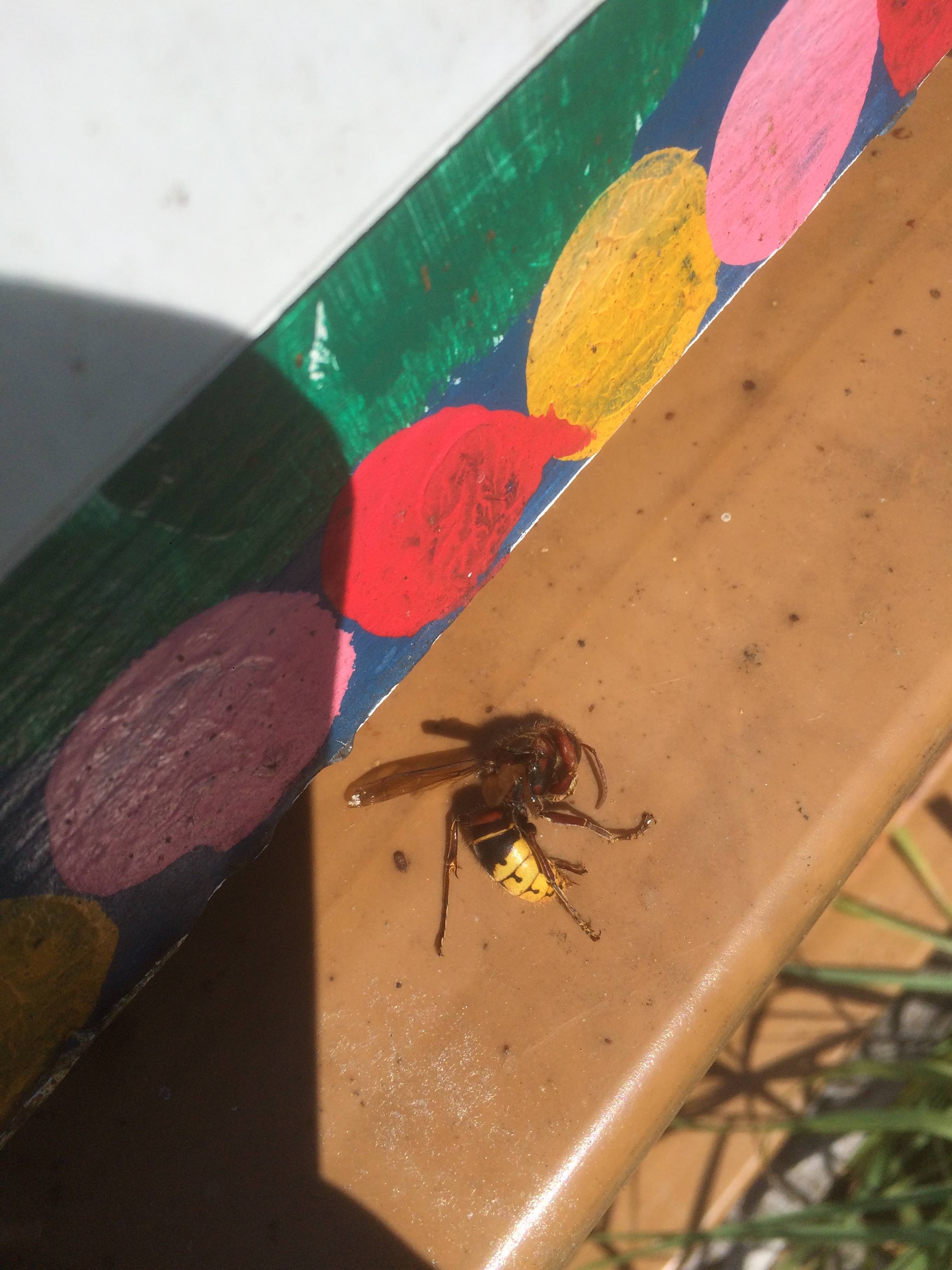 Ce mardi j'ai vu un frelon me voler une abeille. Il vole devant les ruches et prend une abeille. Il est revenu deux minutes plus tard s'attaquer à nouveau aux abeilles. Je l'ai chassé avec un long bout de bois et je ne l'ai plus vu depuis. Soit je l'ai eu, soit il chasse à des moments où je ne vais pas voir. Je suis pour la biodiversité, mais ce genre de bestiole m'énerve quand même...