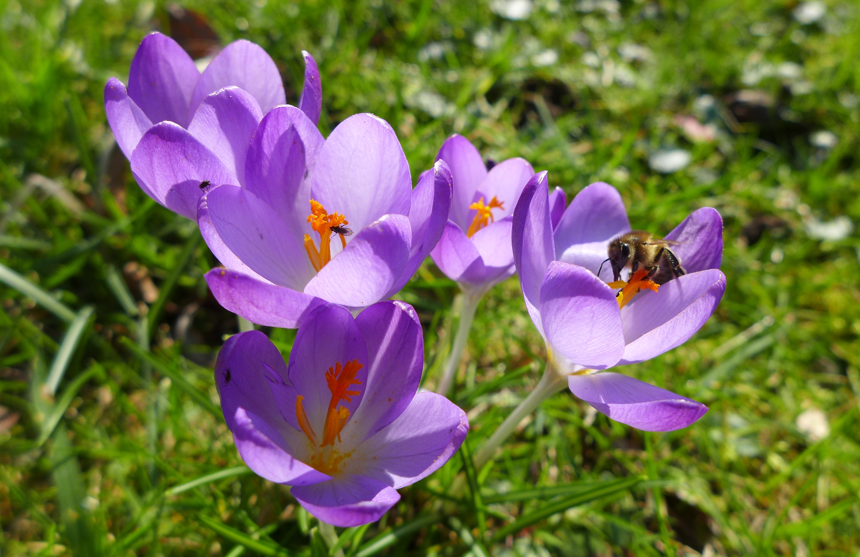 Il fait encore frisquet mais le soleil a poussé les abeilles (et les mouches) à l'assaut des crocus