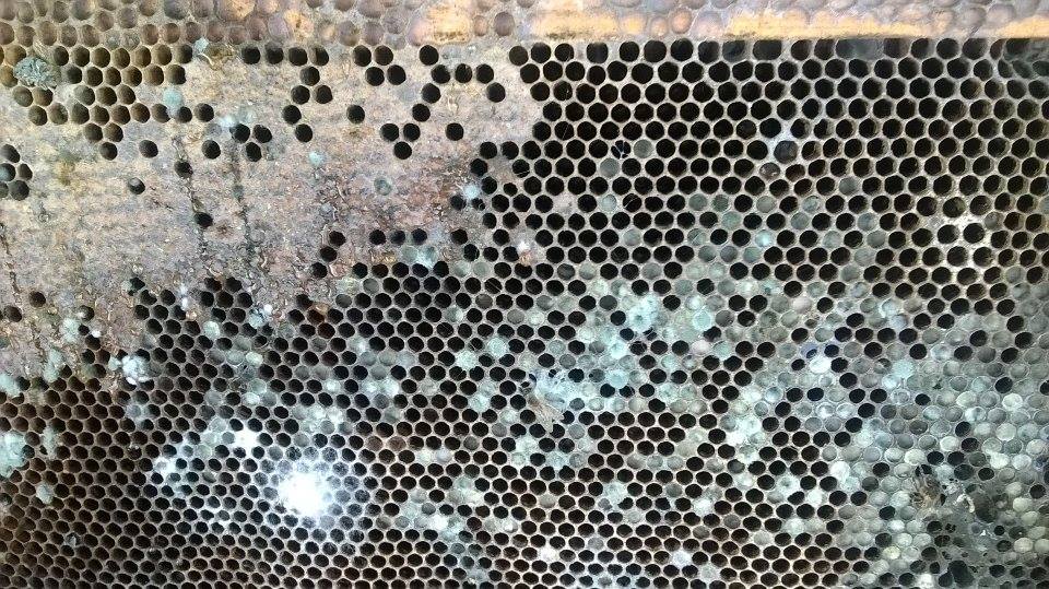Bonjour à tous. Il y a 2 semaines, tout allait bien sur les 2 colonies que je possède. L'une était en pleine forme bien compact et bien fournie en abeilles, l'autre orpheline car impossible de trouver une reine à l' époque donc je me doutais qu'elle ne passerait pas l'hiver. Cependant en ouvrant la ruche, j'ai remarqué de la moisissure sur les cadres de couleur verte. Je sais que c'est du au fait que le pollen moisi à cause de l'absence des abeilles pour réguler l'humidité de la ruche, mais j'aurais voulu savoir quoi faire maintenant. dois je détruire les cadres ou puis je les conserver en éliminant la moisissure au couteau? Comment et avec quoi nettoyer ma ruche? D'avance merci pour vos conseils.