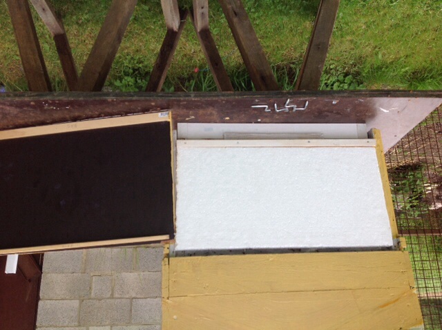 Vous remarquerez que sur une une dadant 10 c on ne sais pas mettre un cadre de hausse complet , 12 c oui , et le bord blanc n'est pas nécessaire , les vitres (brico) fonts 6 mm car plus fin avec la propolis elle se brisées au démontage je pense , je doit encore bricoler la bleu pour mettre un isolant , il faut que se soit précis pour éviter un maximum l'humidité dans la ruche , à choisir je préfère l'instal de la jaune mais bon la bleu était ma première ,jo