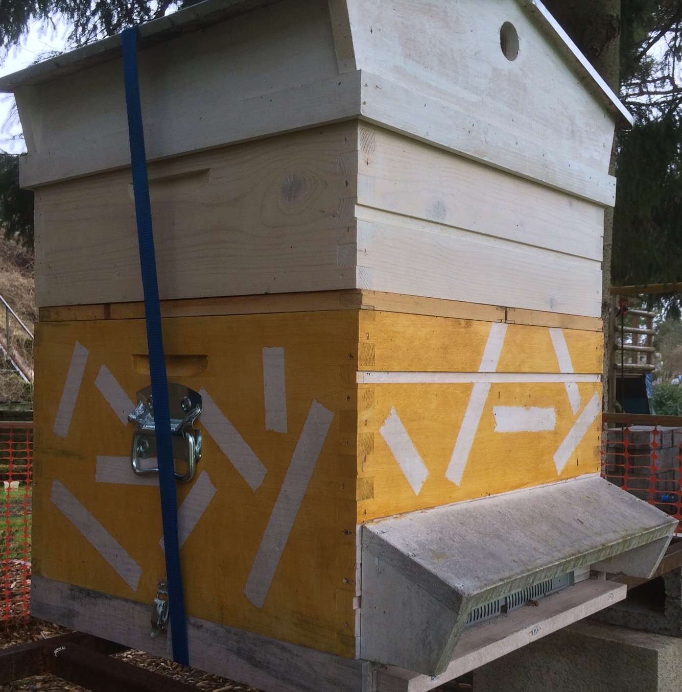 Ruché avec une ligne dérive plus prononcée pour éviter ce problème mettre une bande de couleur sur la ruche
