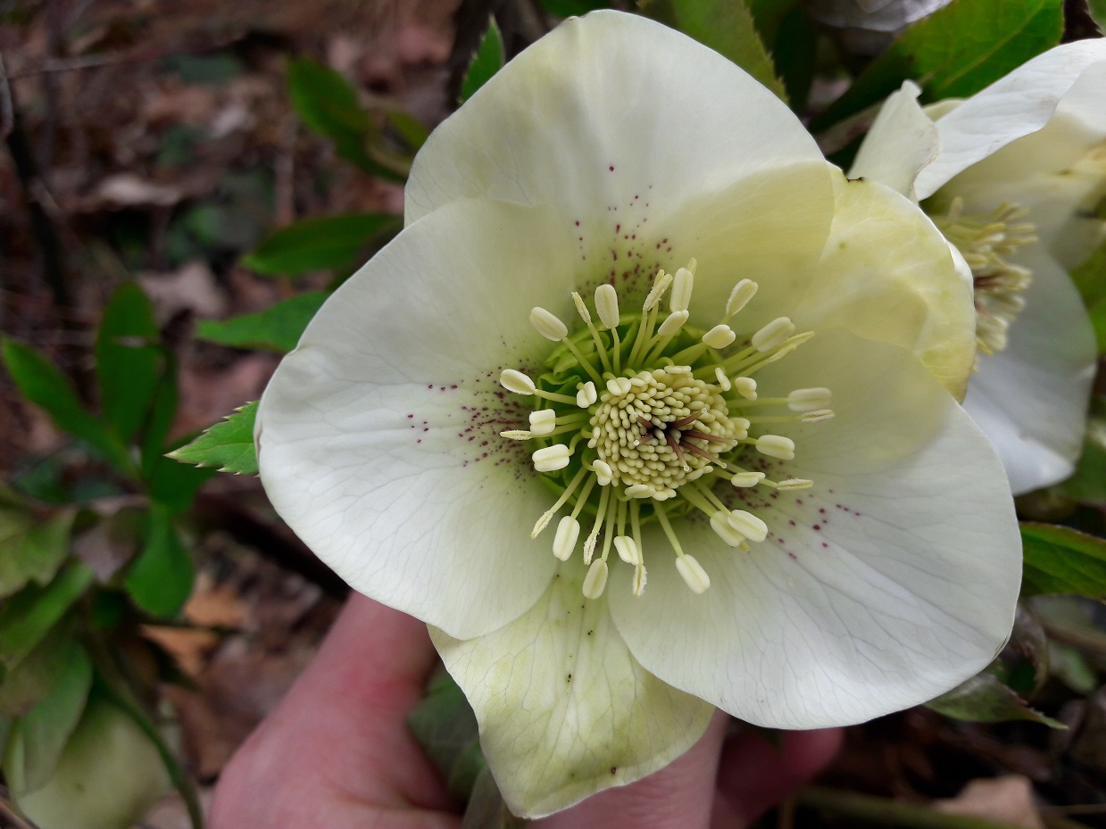 Blanc ça pourrait être la véronique de perse (très petite fleur sauvage) ou peut-être des héllébores ?
