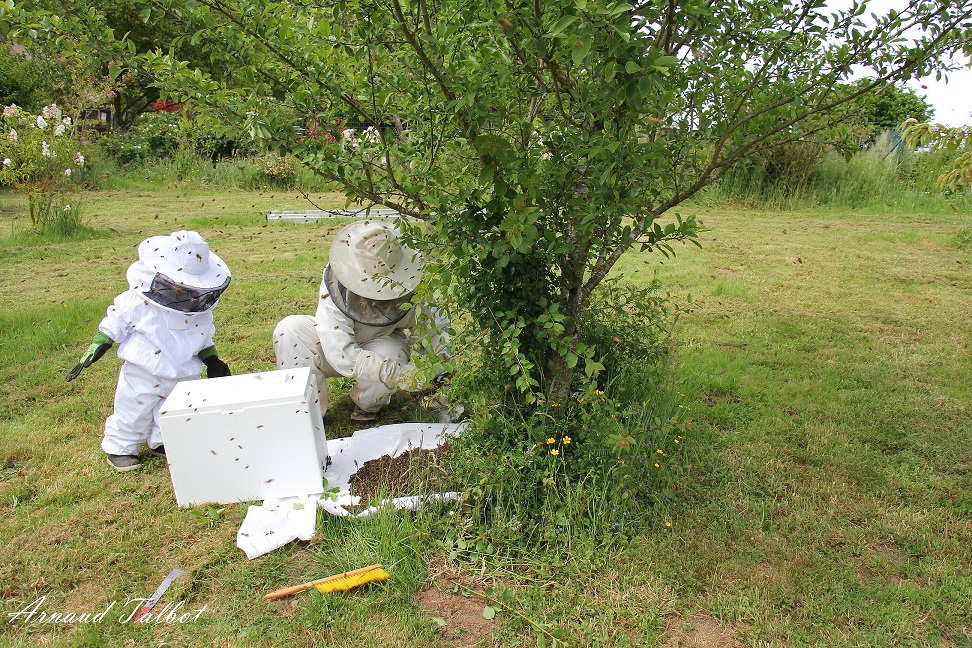 Son premier ramassage d'essaim. Et oui encooooooooooooooooore un
