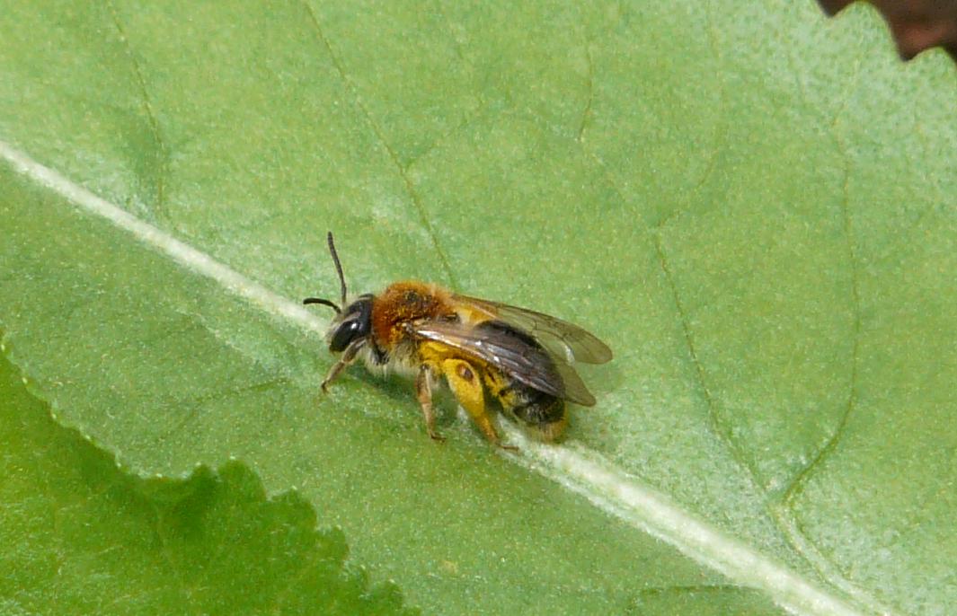 Une abeilles sauvage (je n'ai pas eu le temps de faire des recherches pour l'identifiée) sur une feuille de raifort