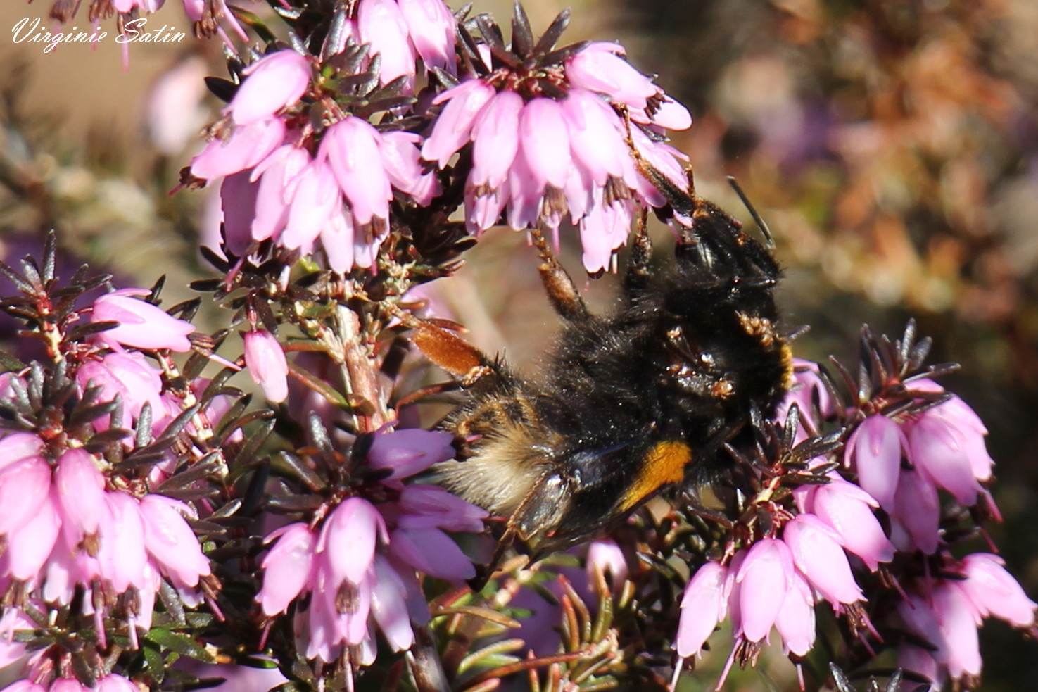 premier bourdon que je vois cette année. Sûrement une fondatrice en cette période. Mais hélas déjà fort parasitée :( par les poux si je ne me trompe.