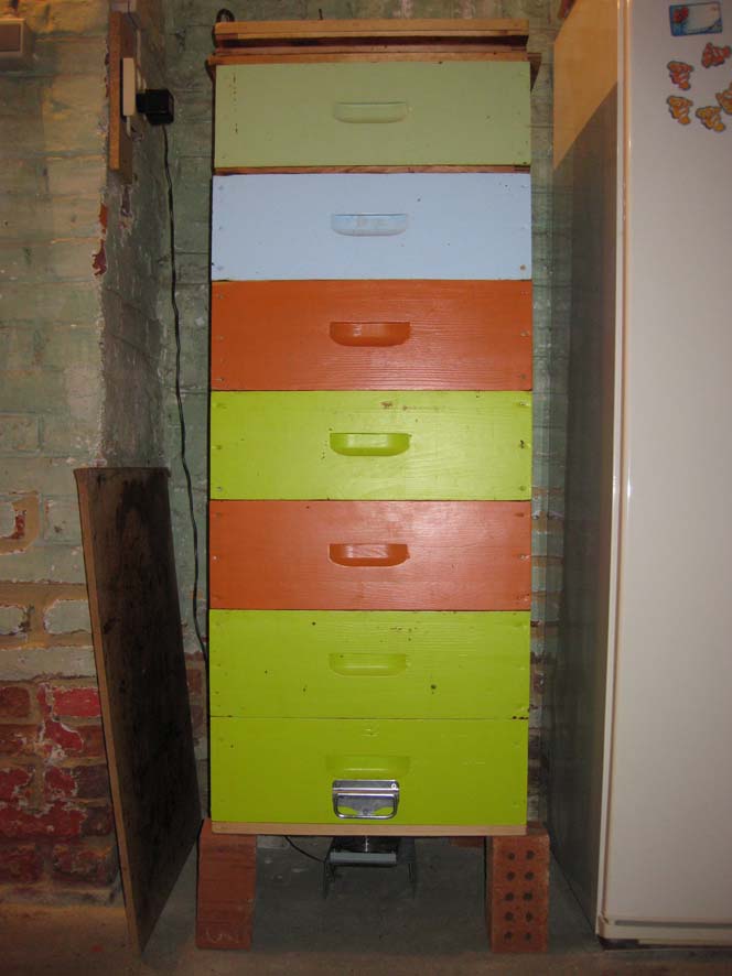 Il y a certainement plein de solutions. Le tout est de construire une colonne de hausses ou de corps avec leur cadres, d'y créer un courant d'air tout en empêchant les petits rongeurs de rentrer.